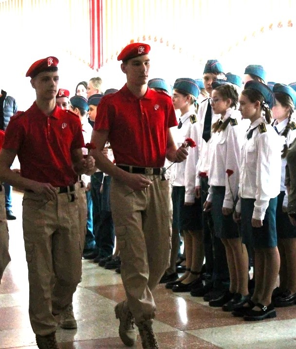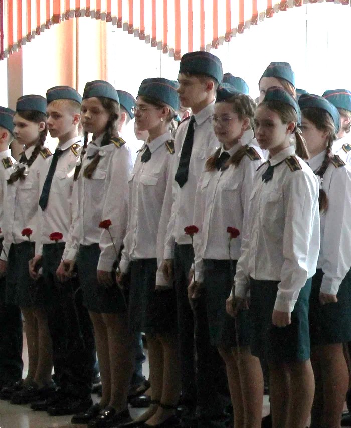 Учащиеся кадетских классов МЧС России, ученики школы, преподаватели и приглашенные гости возложили цветы к «Парте героя» и почтили память павших минутой молчания.